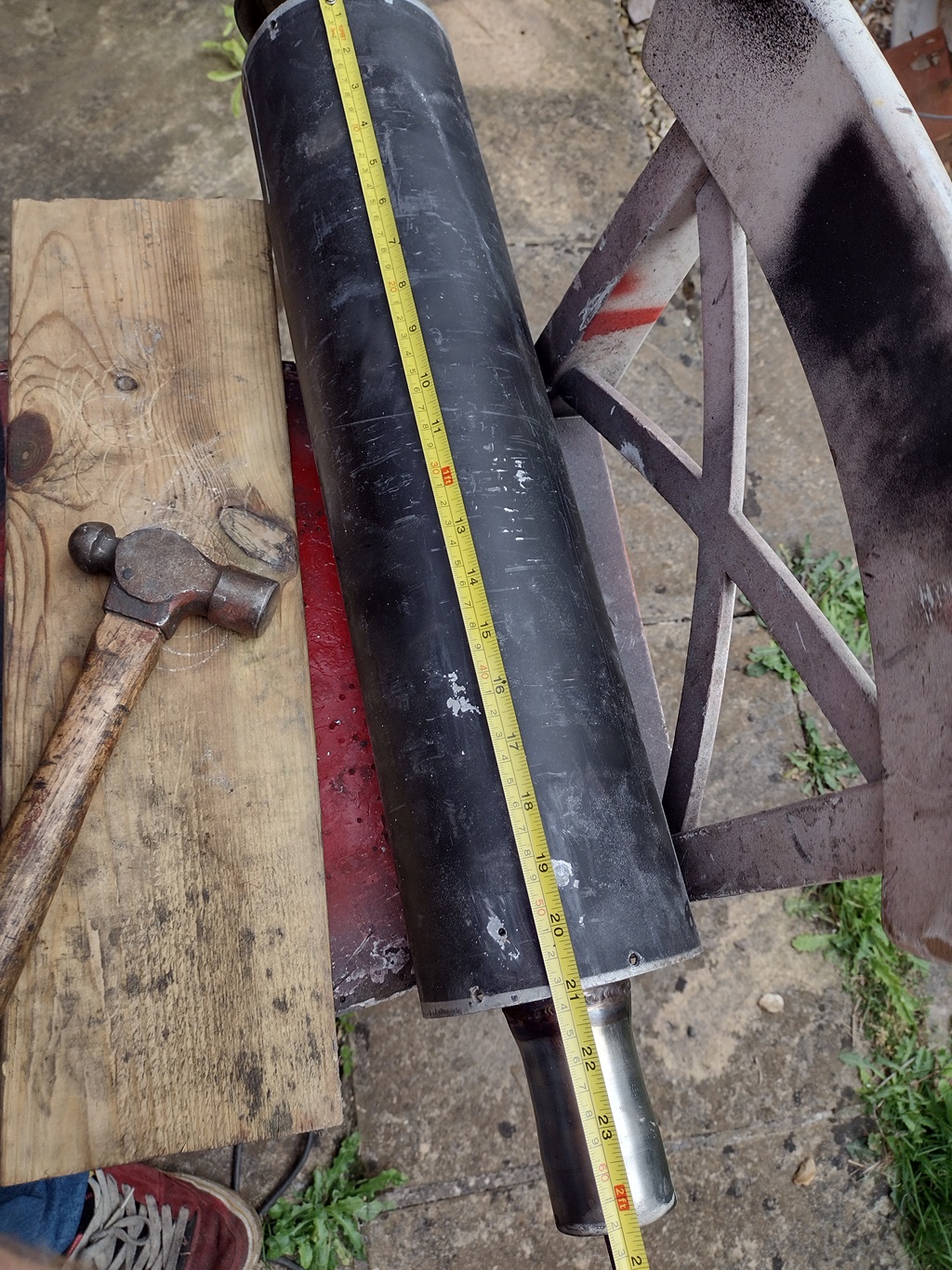 I jumped on the internet and ordered a 5inch diameter piece of stainless exhaust tube, which is flared both ends to allow the old end caps to be used. I also ordered some 2inch diameter perforated stainless tube to run down the middle of the box. This was wrapped with 1.5meters of Acousta-fil exhaust material.