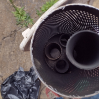 I had to cut and peel the outer shell off to get at the internals and by this point I had already committed to completely rebuilding the whole box. Inside appeared to be a small gap for fibreglass padding, 5mm-ish all the way around, and then a series of weirdly routed baffles. The outlet didn’t even fully align with the internal piping which was quite disappointing.